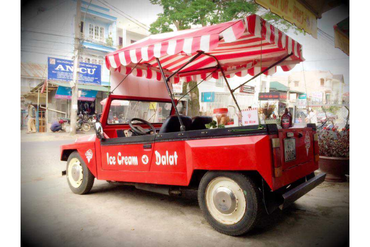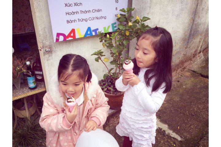 Dalat Ice Cream here you are free to choose the cream, the ice cream here is made by the owner of the shop, so the taste and sweetness are very good, aromatic and fat. What do you guys have but don't stop to enjoy the ice cream here. Dalat Ice Cream has a very cute ice cream car, moving everywhere for you.