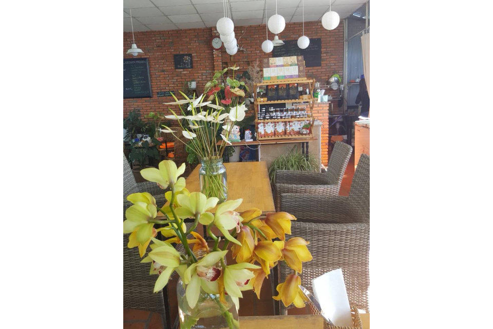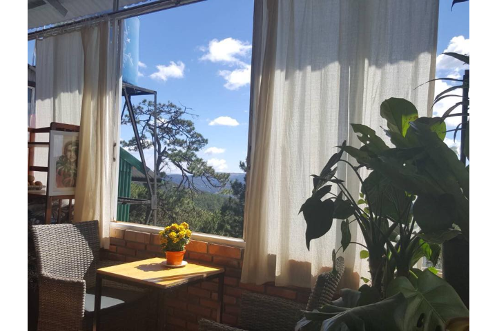 Quán có cảnh nằm trên đồi nhìn xuống thấy Đà Lạt rất huyền ảo. Quán ngập tràn cây hoa xanh mát, hoa tươi được cắm bình mỗi ngày, xen vào đó quán trồng rất nhiều loại hoa rất đẹp. Không gian rất thoải mái, yên tĩnh. Nước uống và bánh ngọt ở đây rất ngon. Các bạn thích ngắm hoa và cảnh thì đến quán này nhé.