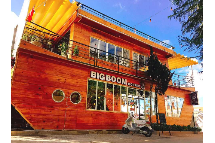 Quán thiết kế mặt ngoài hình con tàu vô cùng ấn tượng. Bên trong nhà được xây dựng bằng gỗ, bàn ghế cũng gỗ, nhìn rất ấm cúng và đẹp. Có cả ngoài hiên, nhìn ngắm thành phố rất lãng mạn. Thực đơn ở đây rất đa dạng, đồ uống rất ngon. Các bạn hãy ghé thưởng thức nhé.