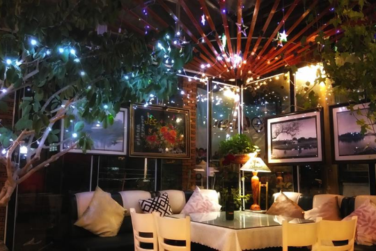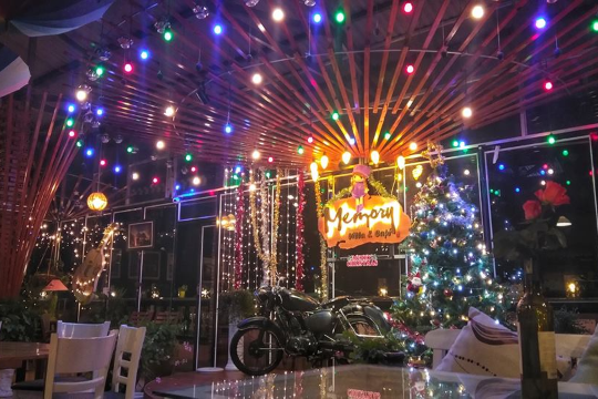 Không gian sân vườn bao quanh với nhiều loài hoa đặc trưng như Tường Vy, Cẩm tú cầu, hoa hồng… Memory cà phê còn có cổ xe ngựa màu tím rất dễ thương cho mọi người tha hồ chụp hình. Không gian quán phải nói rất rộng, trong nhà có khu vực ấm cúng và yên tĩnh hay không gian ngồi hành lang ngắm về tu viện cổ. Bạn tha hồ thưởng thức cà phê và ăn uống ở đây. Vào ban đêm quán phục vụ nhạc Acoustic với các bản tình ca bất hũ của Vũ Thành An, Trịnh Công Sơn, Lam Phương… đều được các ca sỹ của quán cà phê nhạc Trịnh Memory phục vụ hàng đêm từ 19h30-21h30 và khán giả yêu nhạc có thể cùng giao lưu một cách vui vẻ.